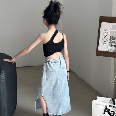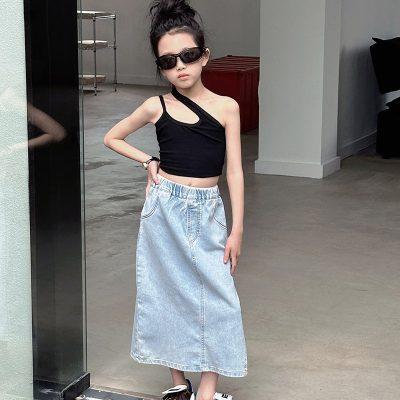 Summer Fashionable Girls Denim Jumpsuit Set with Belt