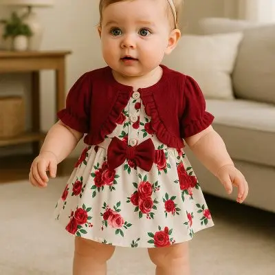 Infant long-sleeved romper with corduroy skirt
