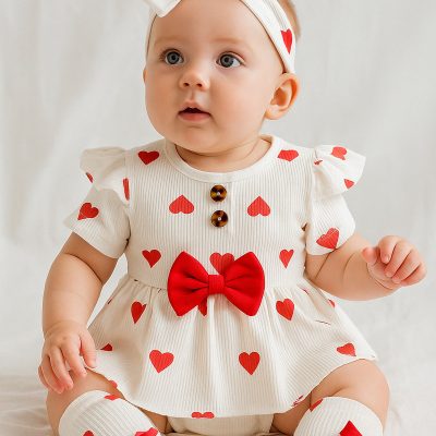 Girl’s jumpsuit with slings and letter-stretched cotton