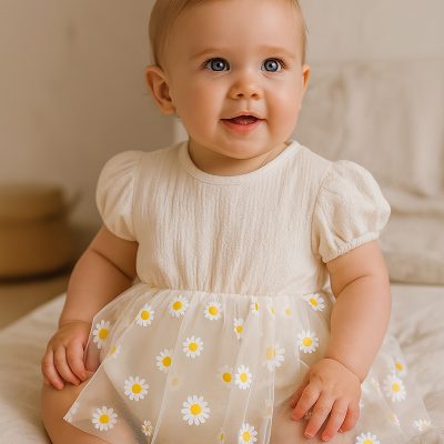 Little Daisy Tulle Skirt Princess Puff Sleeve Romper