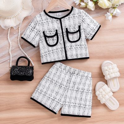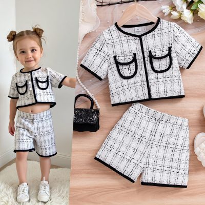 Chanel style Girls’ short-sleeved shirts with shorts two-piece suit