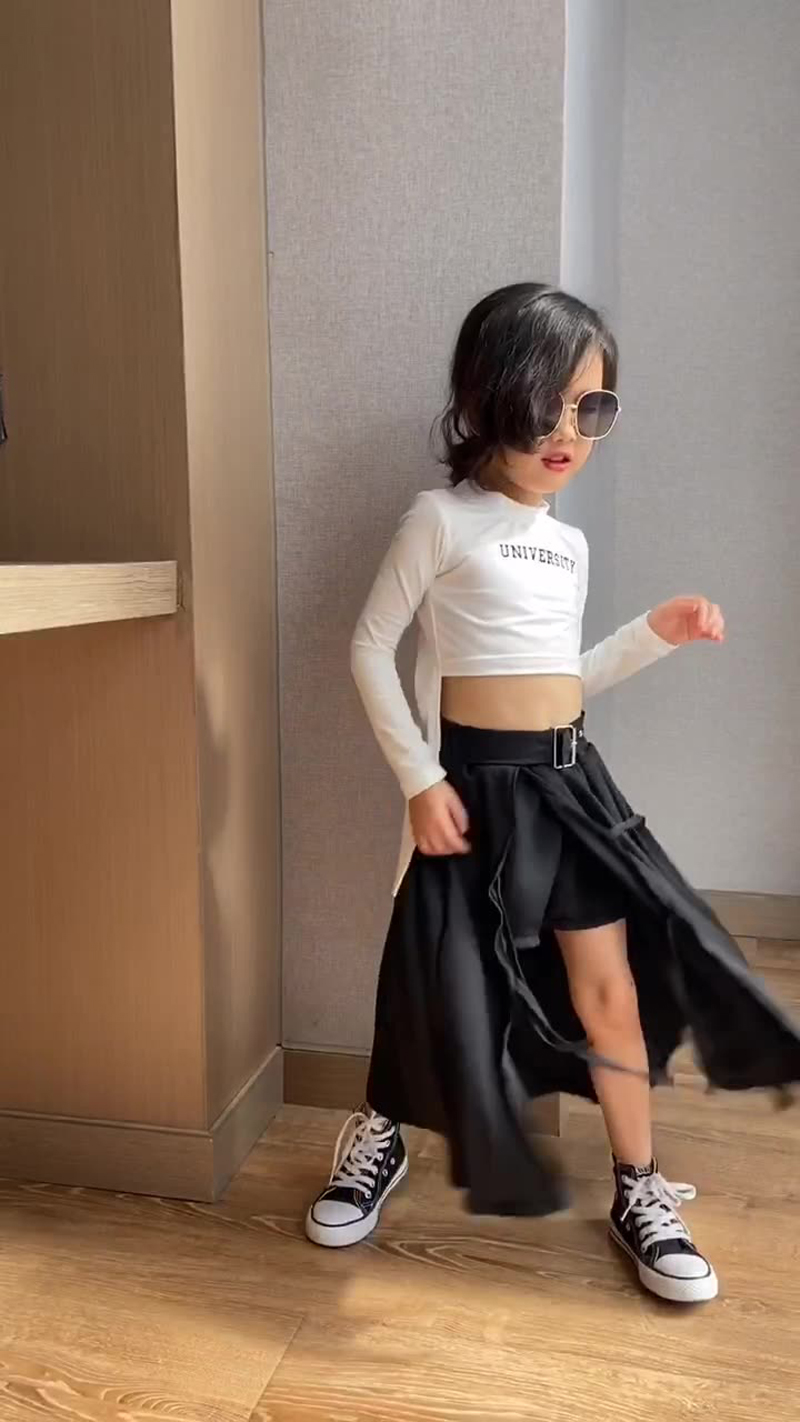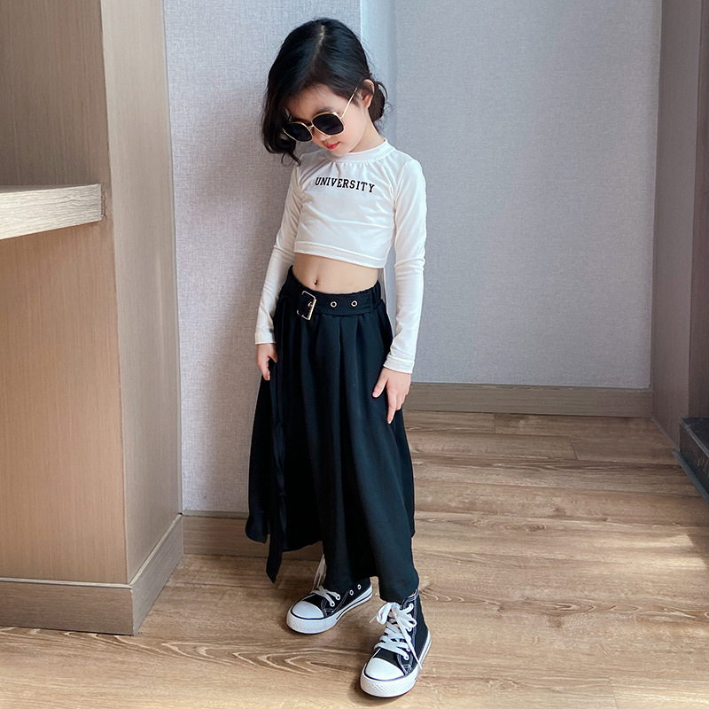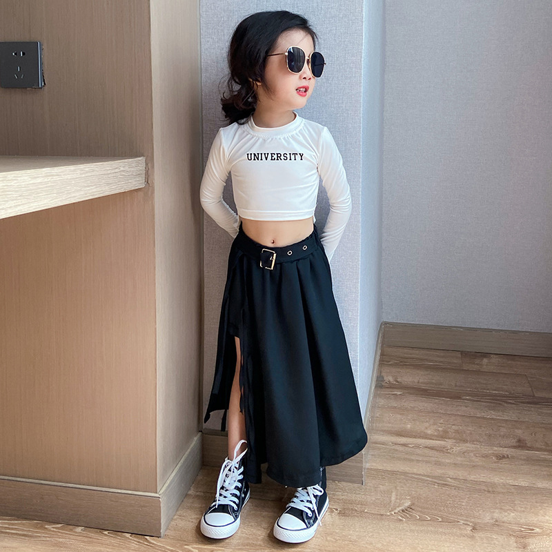 This girls’ slit A-line skirt is made of high drape fabric, soft to the touch, smooth and natural, and not easy to wrinkle. The irregular side slits add a touch of playfulness, and the A-line skirt shape modifies the leg shape, loose but not tight. The classic black is versatile and practical, suitable for spring and autumn seasons with sweaters, sweatshirts or shirts to create a Korean girlish feeling.
