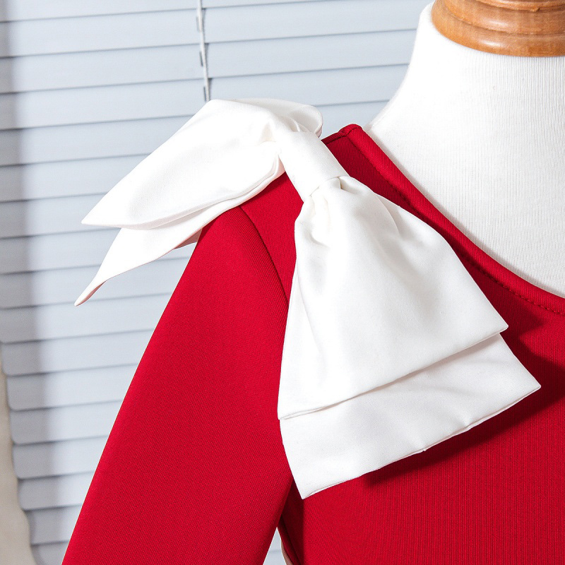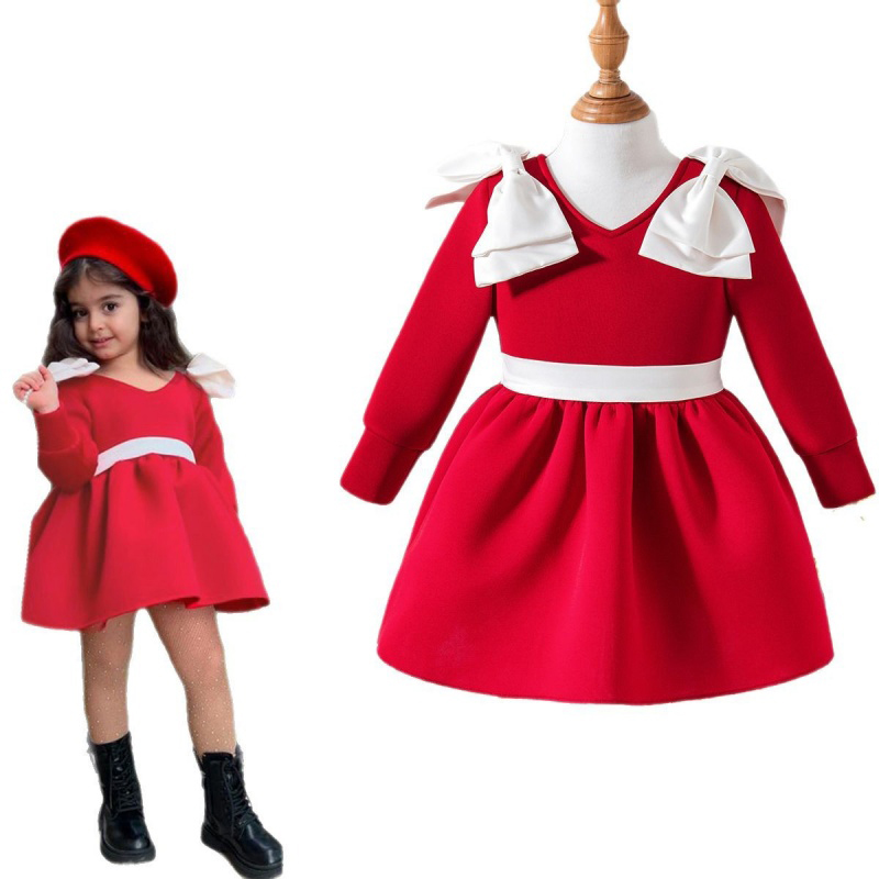 Girls’ long-sleeved V-neck bow A-line princess dress
