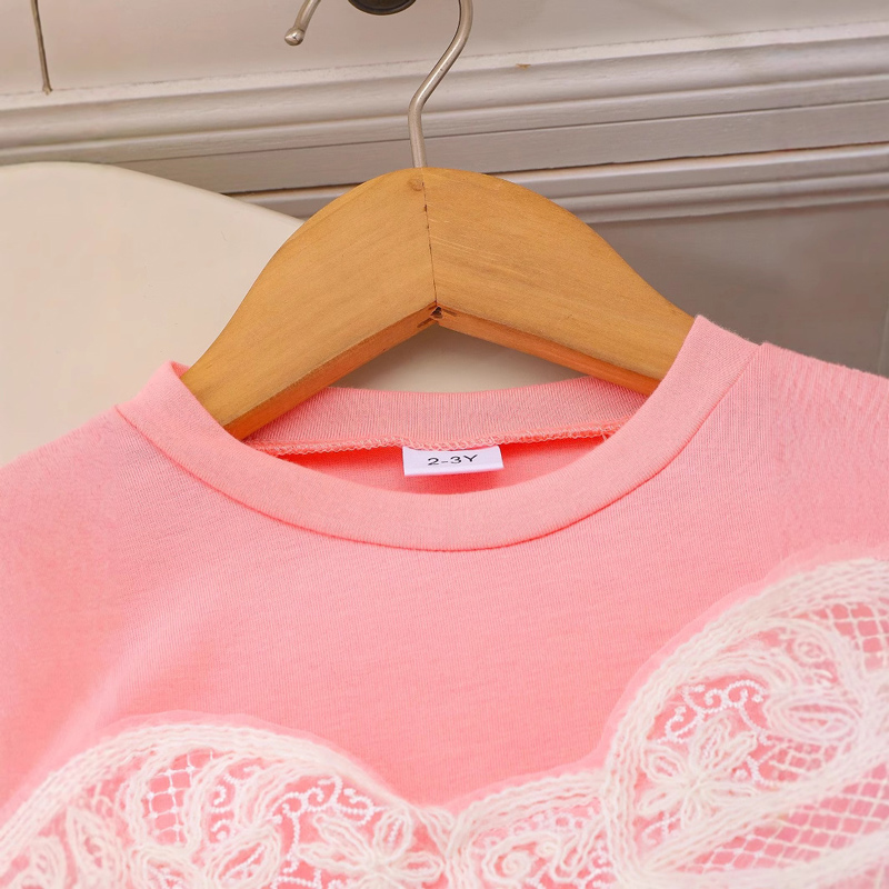 Girls short-sleeved T-shirt top highlights: sweet three-dimensional bow embellished neckline, 65% cotton + 35% polyester fiber breathable and soft, candy color sets off the baby’s fair skin, cuffs slightly curled design makes it more playful, no deformation or pilling after washing.