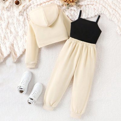 Girls’ casual hooded sweatshirt, suspenders and trousers three-piece set