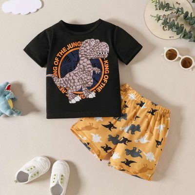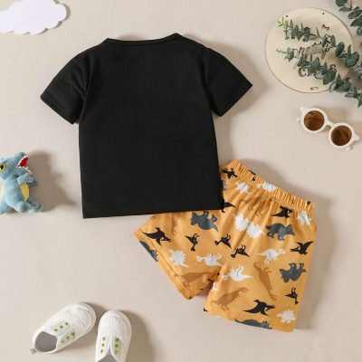 Summer Boys Round Neck Short Sleeve Printed Shorts