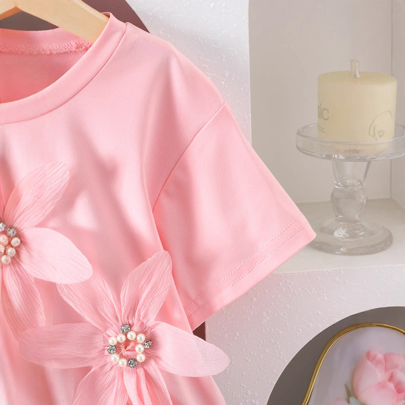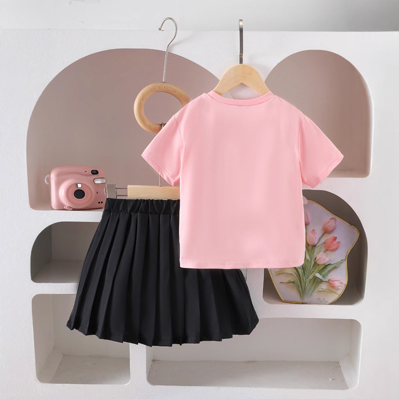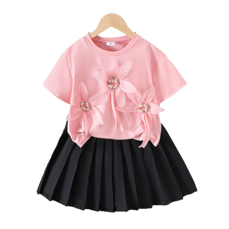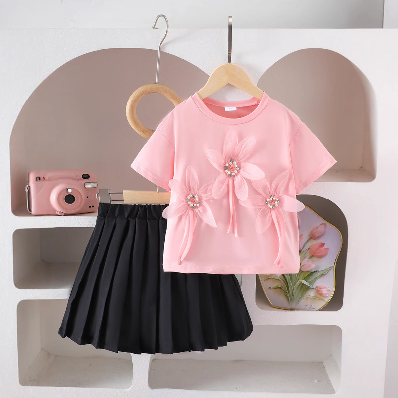 Summer Fashion Two-piece Suit for Girls | Flower T-shirt + Pleated Skirt