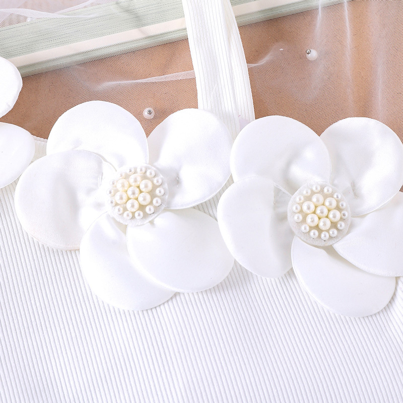 Mesh 3D flower tube top suspender suit trousers girls suit