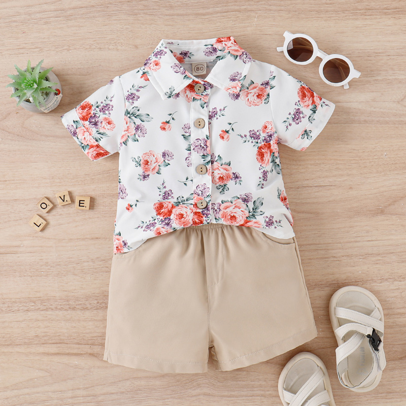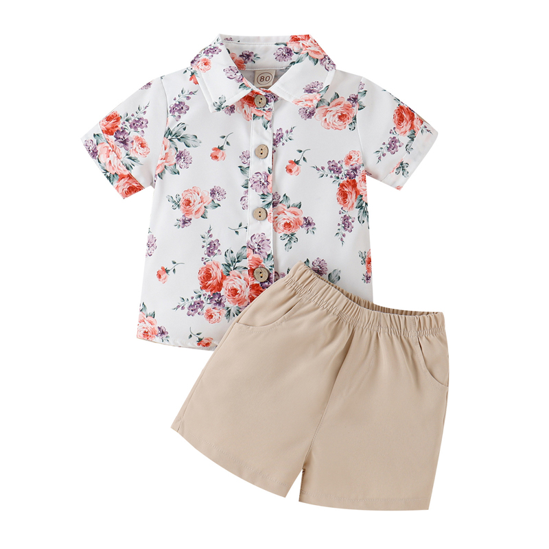 Summer Printed Boys Short Sleeve Shirt Shorts