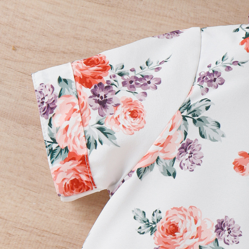Baby Girl Mesh Romper with Flower Embroidery Sleeves and Skirt