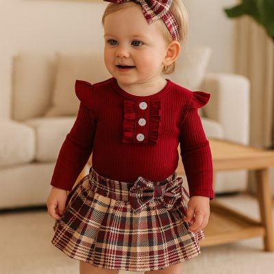 Autumn and winter girls knitted long-sleeved top pleated skirt suit